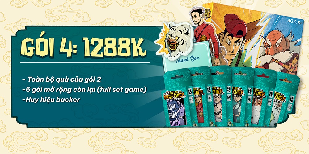 Gói 2 + 5 gói mở rộng còn lại (full set game) + huy hiệu backer + | Giá bán lẻ dự kiến: 1288k